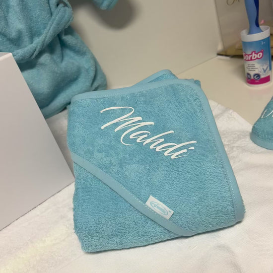 Onze gepersonaliseerde babybadjas is gemaakt van hoge kwaliteit, superzacht materiaal dat lief is voor het tere babyhuidje. Perfect na het badje, op vakantie of lekker cozy thuis.